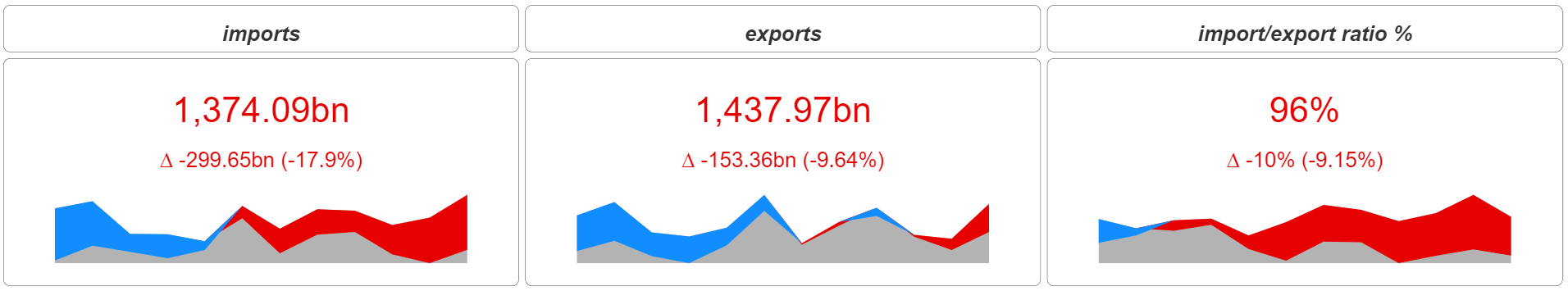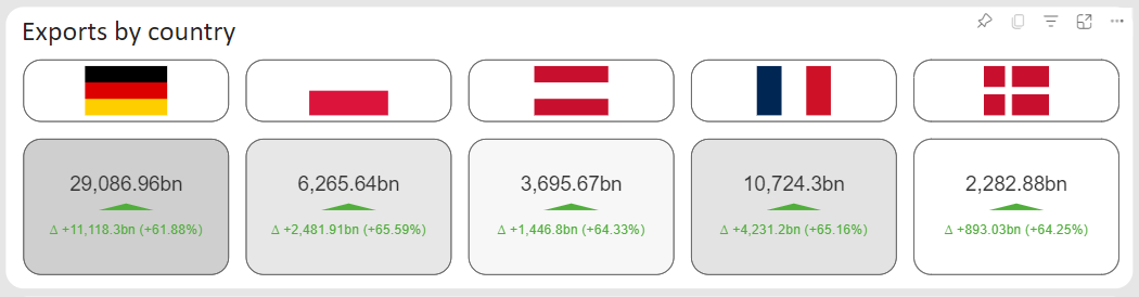 You want KPI cards to be an active part of your interactive dashboard? Use KPI Matrix. Users can filter data by selecting one or multiple cards, rows or columns.