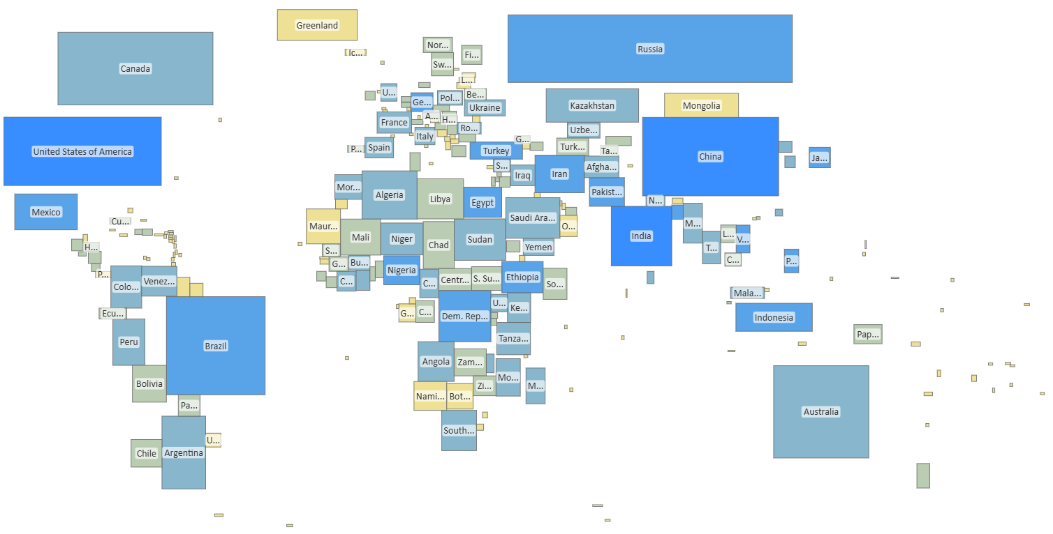 Cartogram supports rich formatting options, conditional styling, and interactive features such as selection, highlighting, and tooltips—ensuring your visuals remain both expressive and analytically powerful. Whether you're comparing markets, visualizing clusters, or presenting abstracted spatial data, Cartogram offers a flexible, modern way to turn complex information into intuitive visual patterns.