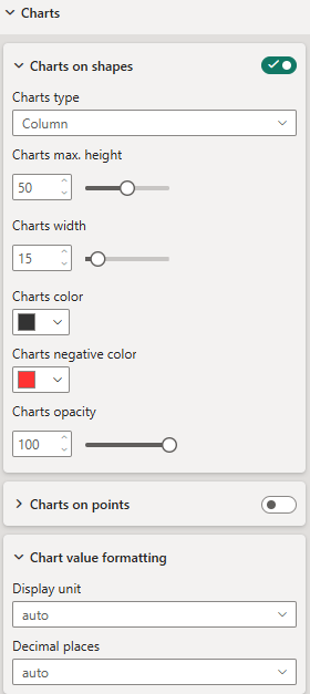 Chart value formatting - Value formatting (display unit and decimal places) to be applied when the measure "Chart value" is numeric. It will be applied when showing the "Chart value" measure in the tooltip.