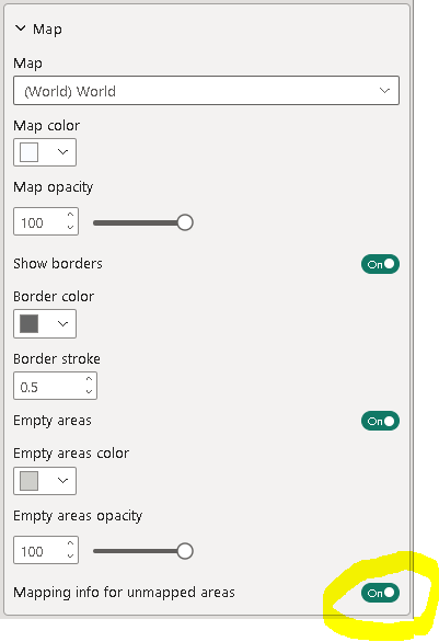 Empty areas - Toggle to display areas/shapes without data mapped to them.